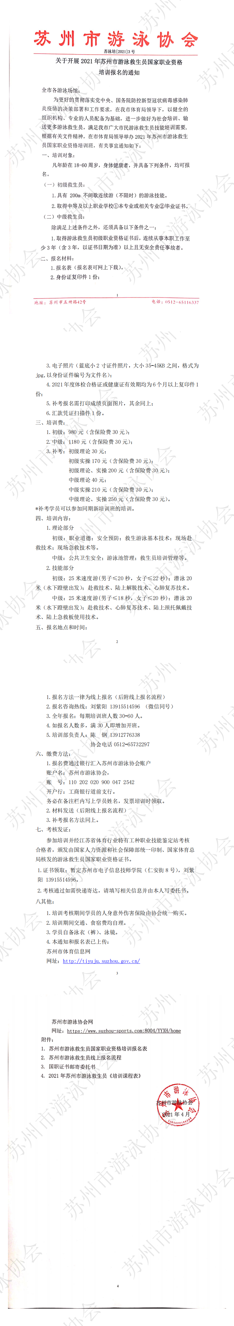 关于开展2021年苏州市游泳救生员国家职业资格培训报名的通知