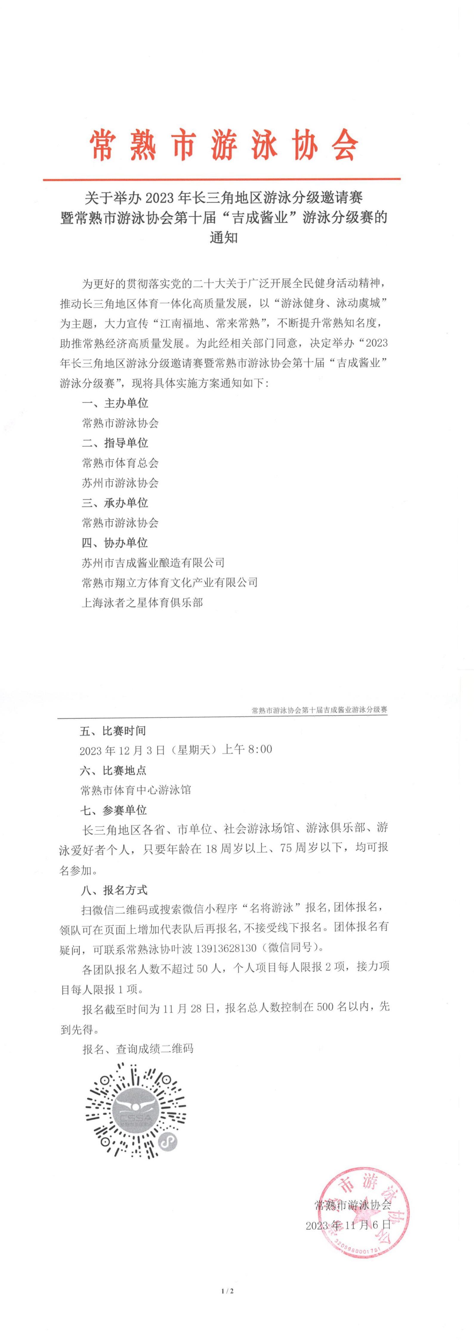 转发常熟市游泳分级赛比赛通知